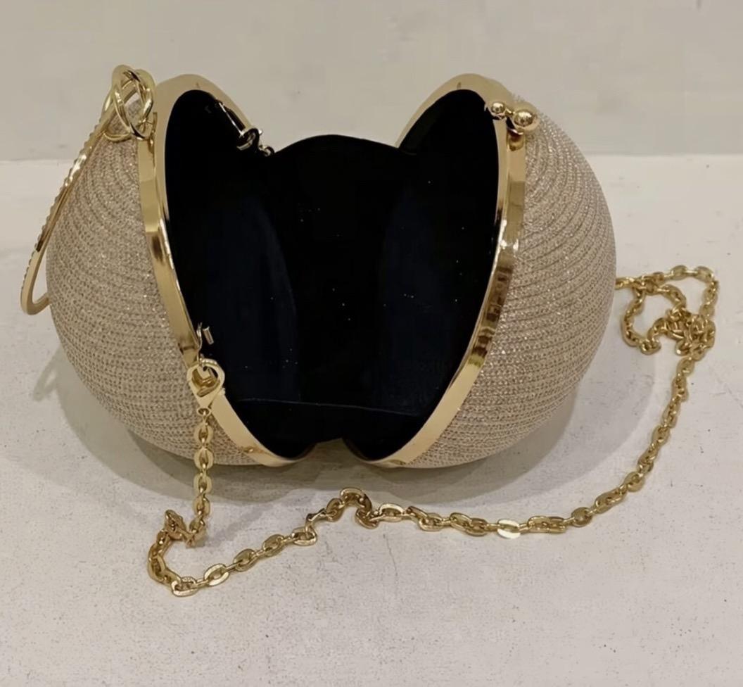 Przygotuj się na spojrzenia pełne zachwytu 😍 Ta unikatowa, kulista torebka to prawdziwy hit, który natychmiast podkręci każdą stylizację! Delikatny połysk ✨ i luksusowe złote detale sprawiają, że wygląda jak biżuteria, a nie zwykła torebka.