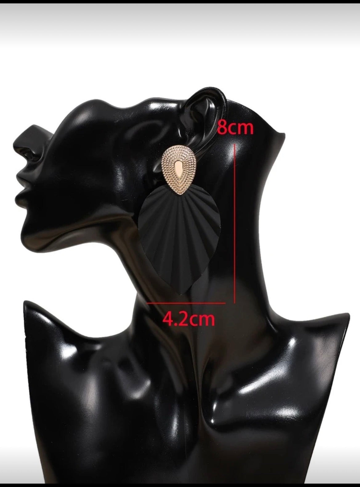 Minimalistyczne, a jednocześnie bardzo efektowne. Te wyjątkowe kolczyki w głębokiej czerni zachwycają nowoczesną, plisowaną formą i subtelnym metalicznym elementem w kształcie łezki 🤍