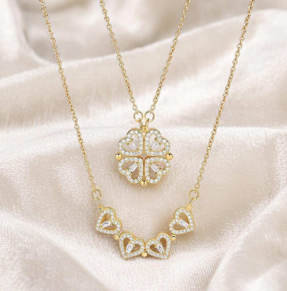 🍀 ELEGANCKI NASZYJNIK Z MOTYWEM CZTEROLISTNEJ KONICZYNY 🍀