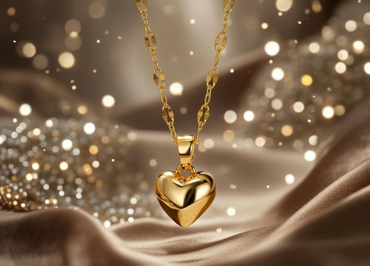 Centralnym elementem zestawu jest delikatny naszyjnik z zawieszką w kształcie serca, wykonany z wysokiej jakości stali chirurgicznej w kolorze złota. Subtelny, elegancki i ponadczasowy — idealny zarówno na co dzień, jak i na wyjątkowe okazje.